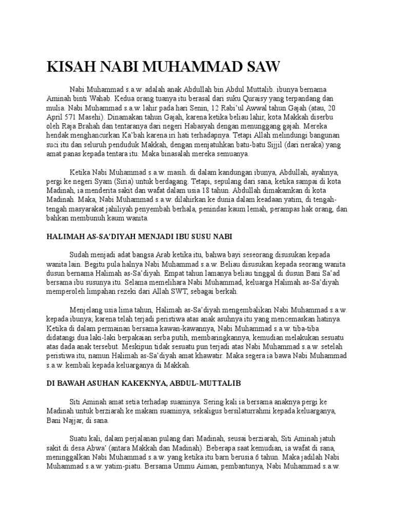 Kisah Nabi Muhammad Saw : Sebagai pembawa ajaran agama islam kepada seluruh umat manusia, beliau dilahirkan di makkah, tanggal 12 rabiul awal pada tahun hijriah.. Nabi muhammad saw sendiri merupakan nabi paling akhir yang diutus allah untuk menuntun umat di dunia. Kisah teladan nabi muhammad perlu dikeathui oleh umat muslim karena dari kisah tersebut kita dapat memetik hikmah dan pelajaran dalam hidup. Berikut kisah nabi muhammad dari lahir sampai wafat yang bisa mom dongengkan kepada si kecil di kisah nabi muhammad saw dimulai sejak hari kelahirannya, yakni pada tanggal 12 rabiul awal atau bertepatan di hari senin, 20 april 571 m. Setelah nabi muhammad saw wafat, abu bakar menjadi khalifah islam yang pertama pada tahun 632 hingga tahun 634 m. Lahir dengan nama abdullah bin 'utsman.